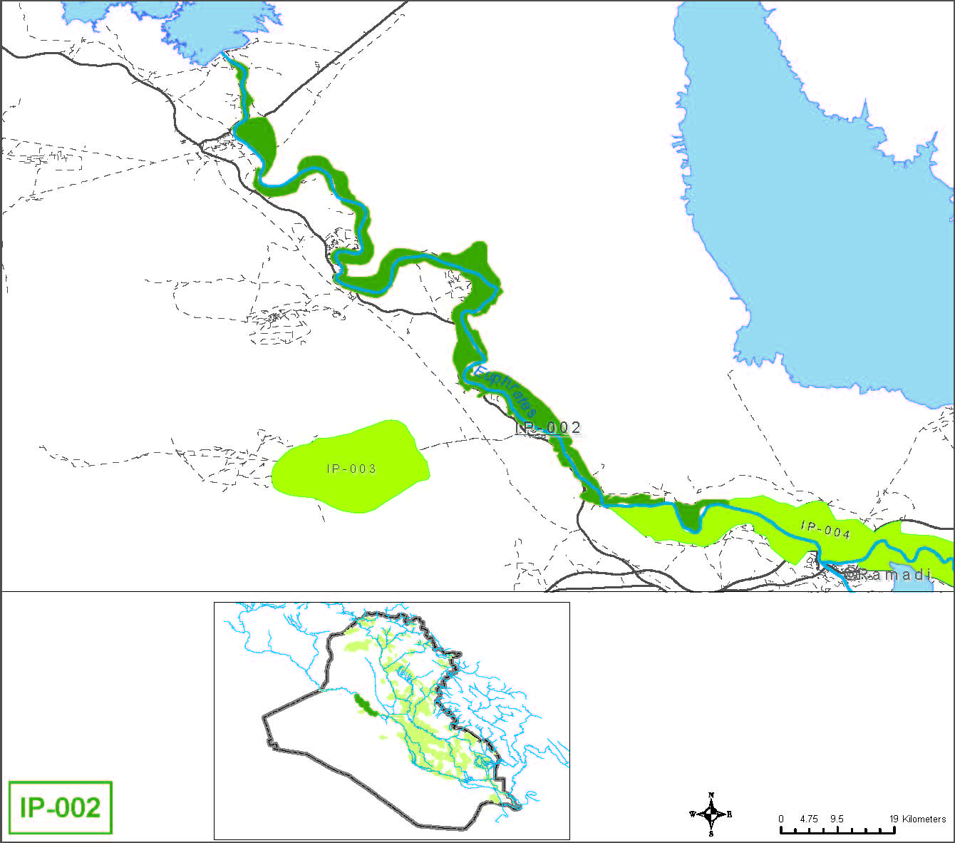 The ‘Small farms from the Haditha dam up to the boundary of the Ramadi project (Sekran) -Left bank of Euphrates river south of Haditha dam- ‘ irrigation project (IP) is located in Anbar Governorate, in the Euphrates River Basin.According to the Ministry of Water Resources, SWLRI Division, and after the meetings during December 2013 to February 2014, the project is ‘Partially Developed’ over an area of 1 thousand Du out of a total command or gross area of about 47 thousand Du (11.75 th. Ha), corresponding to a net area of 41.2 th. Du. The source of irrigation water is the Euphrates River.About 47 th. Du are currently cultivated (99% of the total area to be implemented).